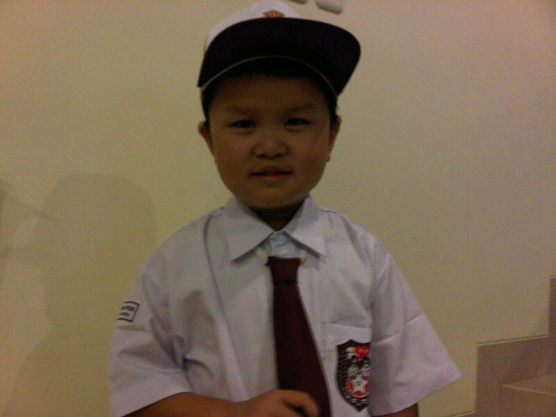 I remember in the first month of school, it was so hard for us to convince him that school was fun and it was not as scary as he thought to be left alone there. He cried all the time asking to go home and ended up with throwing up everything he ate. He kept doing that to get our attention. However, going to the 2nd month, he started to like school, play with his friends and catch up with the lesson. Suddenly, he speaks English all the time. Then, he pretended he was the teacher and performed very well as hawaian dancer.. the other time, he fought with Matthew - his fighting partner.